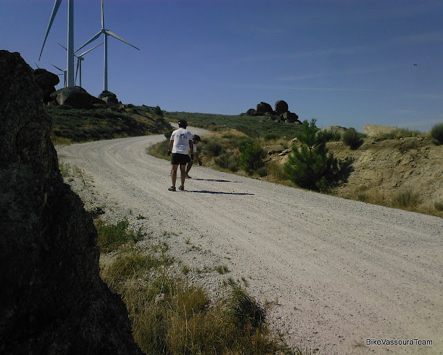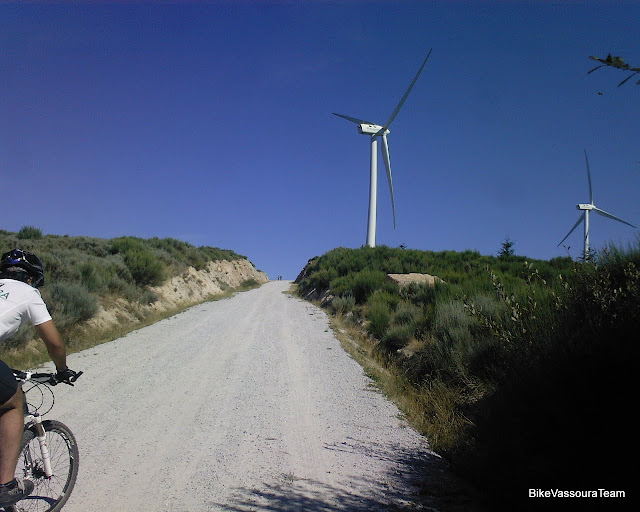 A primeira dificuldade do dia estava à nossa frente: cerca de 10 kms subidinhos para as antenas , digo para as eólicas... é curioso o alcunho a que quase todos as sucumbem...
