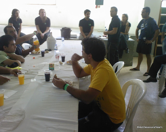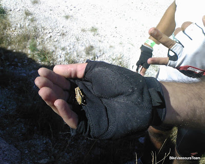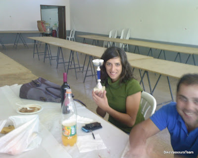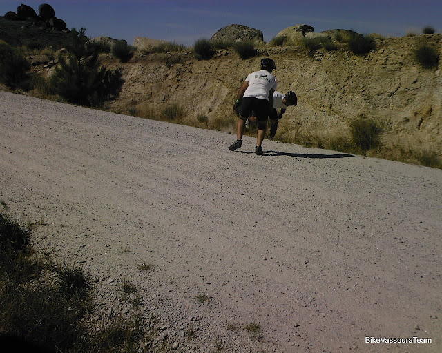 Fez com que as bicicletas se mostrassem bastante rebeldes na hora de curvar e de travar... Foram alguns kilómetros onde os esqueletos dançaram dentro dos corpos, e onde as curvas apertadas assustaram alguns de nós. Lá no fundo demos conta que um companheiro do pedal tinha entrado em dificuldades, tinha ficado sem poder operar o desviador traseiro, o cabo de aço não tinha resistido. Ainda assim pedalou ainda até ao 2º ponto de abastecimento, aproveitando a descida que nos descansava as pernas.