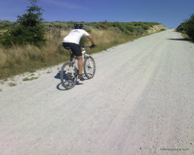 A penosa ladeira acusou a falta de chuva que se tem sentido. Cheia de um pó fininho que quase cobria os aros da roda, dificultando o trabalho ás pernas que se iam ressentindo.